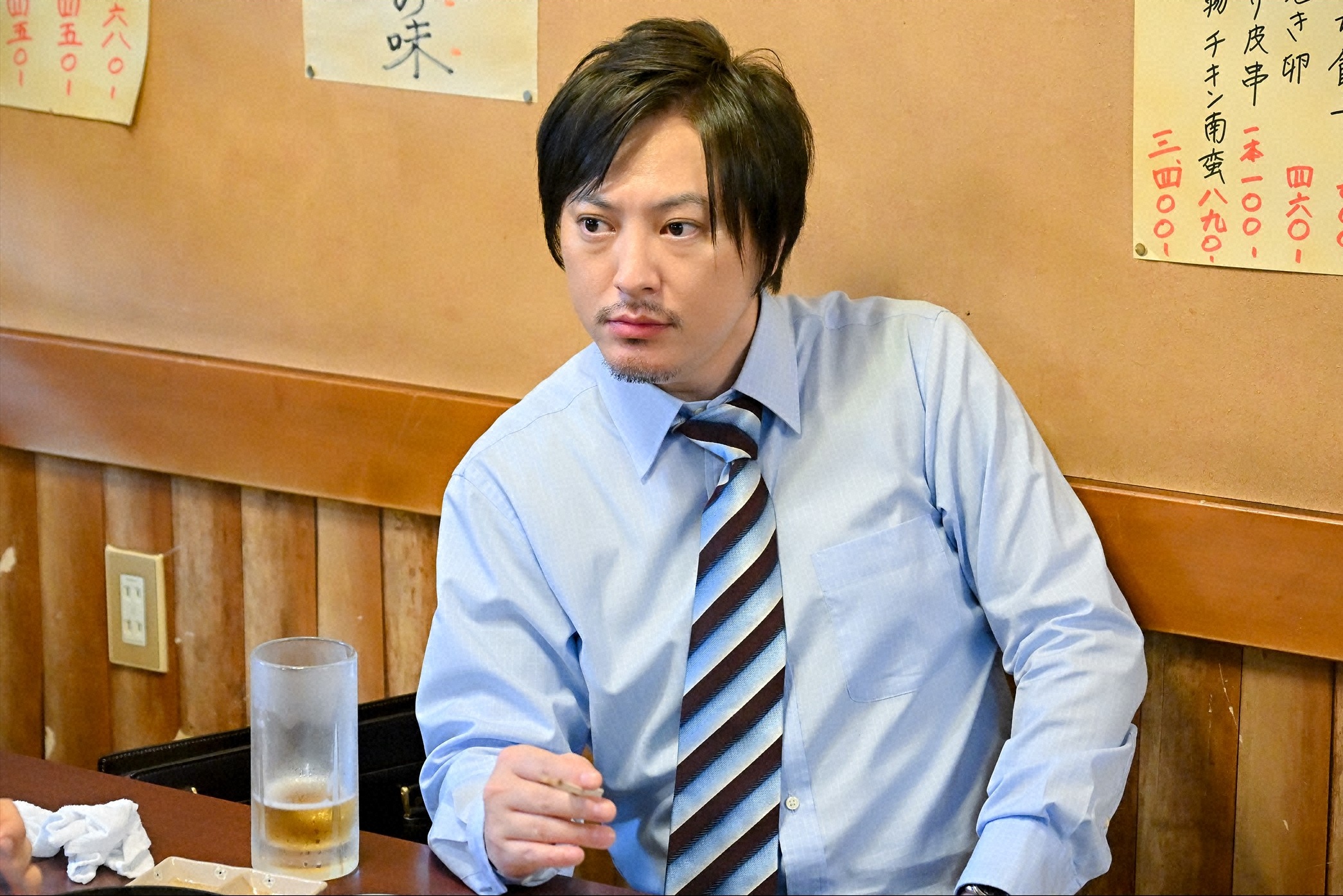 父・勝(菅原大吉)の会社を継ぐことになり、その挨拶回りで地元の大分から東京にやってきた鷹広と勝男は居酒屋へ。料理が出てくるなり、鷹広は「全体的に彩りが足りんな」「アドバイスや」と、どこかで聞いたような文句を垂れる。