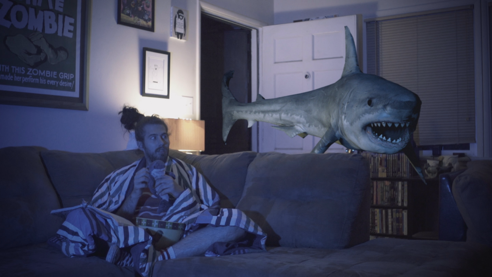 ストーリーは、かつて映像制作を志していた二人の兄弟の未完成原稿から、突如として人食いザメが現実世界に出現、“〝ひどいサメ映画のサメ”〟として生み出されたことに憤りを覚え、暴走する──というもの。ハイテンションなナンセンスギャグには賛否両論あるだろうが、“〝創作にかける熱い思い”〟というテーマは一貫しており、この手のインディー映画としては意外にも見られる作り。サメのCGがヘナチョコであることを逆手に取った小ネタなど、拙いなりにギラついた、創意工夫の良さを評価したい一本だ。